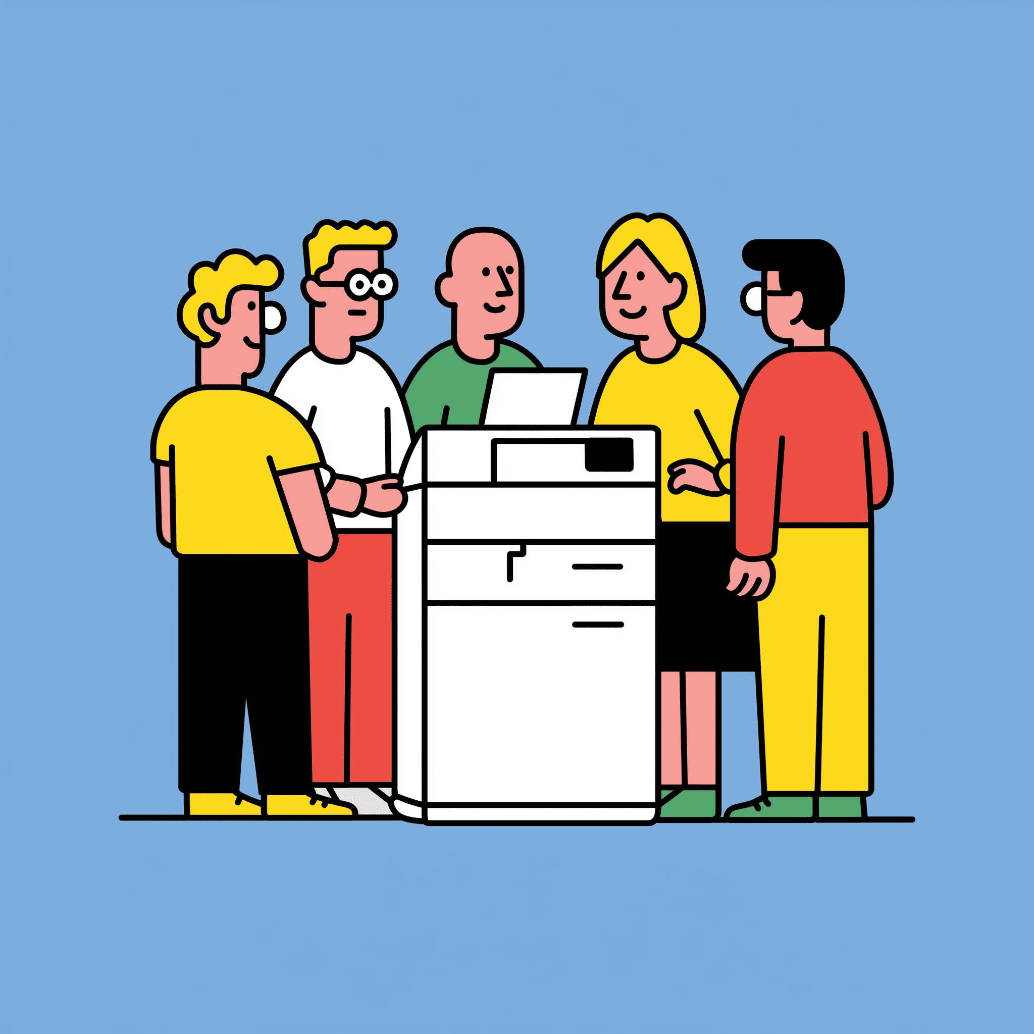 Если в компании 5 сотрудников, обычно нет смысла переплачивать за тяжелое корпоративное устройство. Намного важнее, чтобы МФУ было надежным, понятным в эксплуатации и не требовало лишних затрат на старте.
