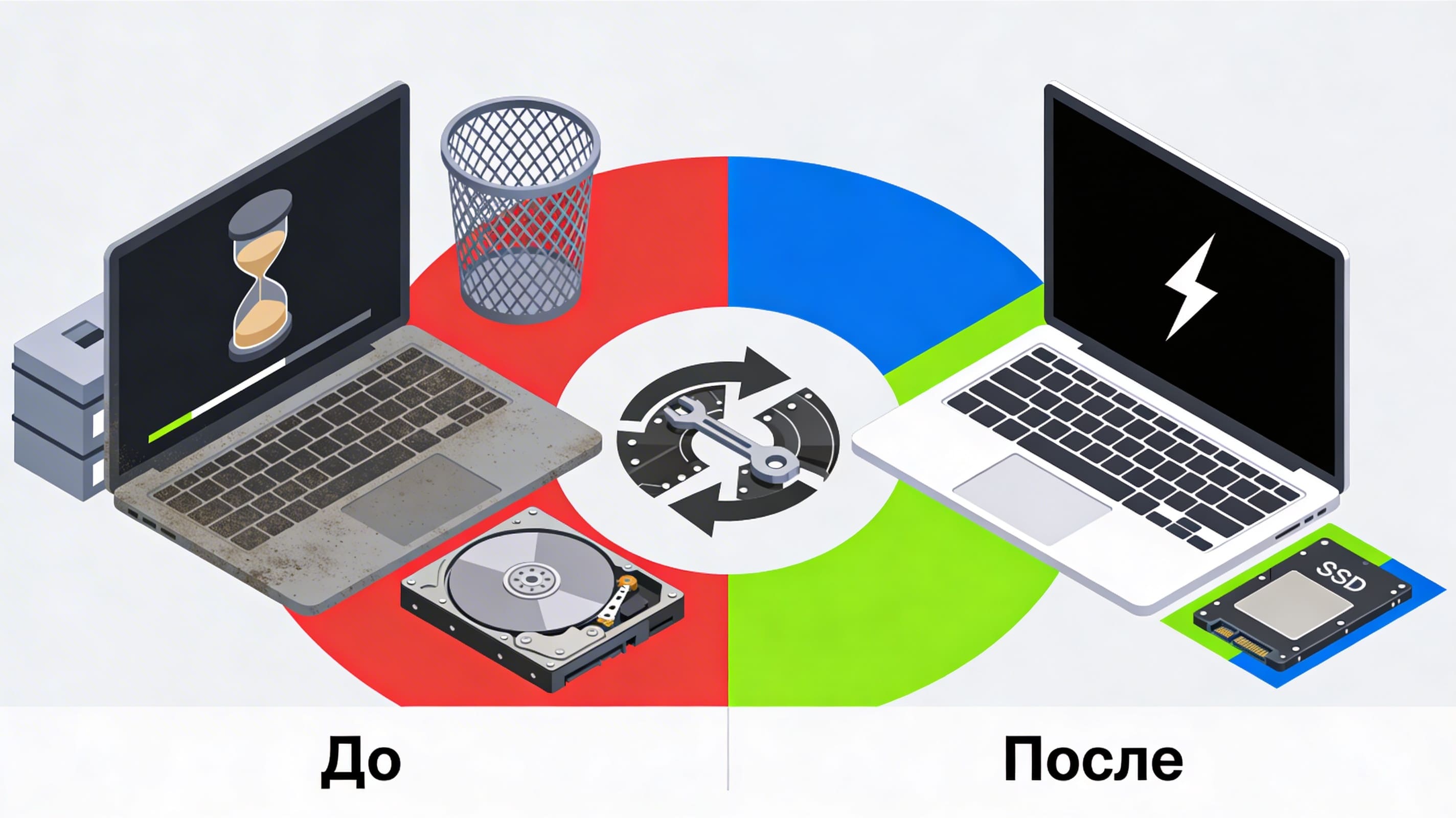 Однако в 80% случаев проблема кроется не в слабом процессоре, а в устаревшем жестком диске (HDD). Простая замена старого диска на современный твердотельный накопитель (SSD) способна дать технике вторую жизнь и сэкономить компании значительные средства.